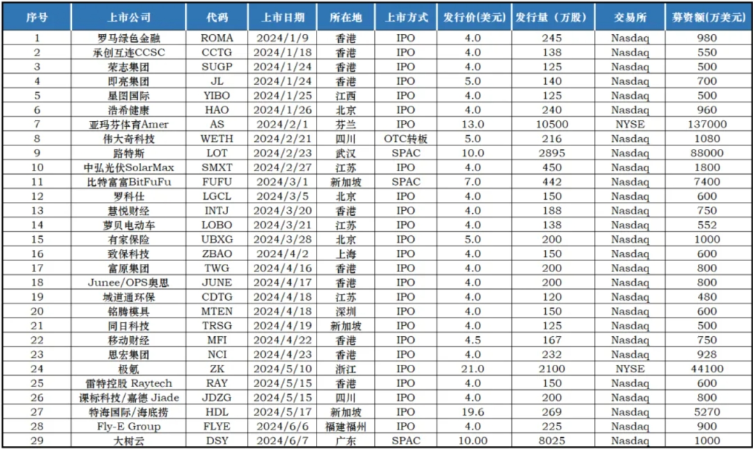 截至发稿前,已有29家中国企业成功在美股市场挂牌上市,累计募资规模高达30.05亿美元。